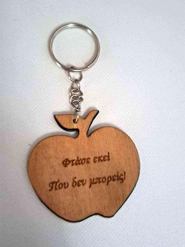 Ξύλινο μπρελόκ μήλο με χαραγμένο μήνυμα, διπλής όψης – 10×10 εκ.